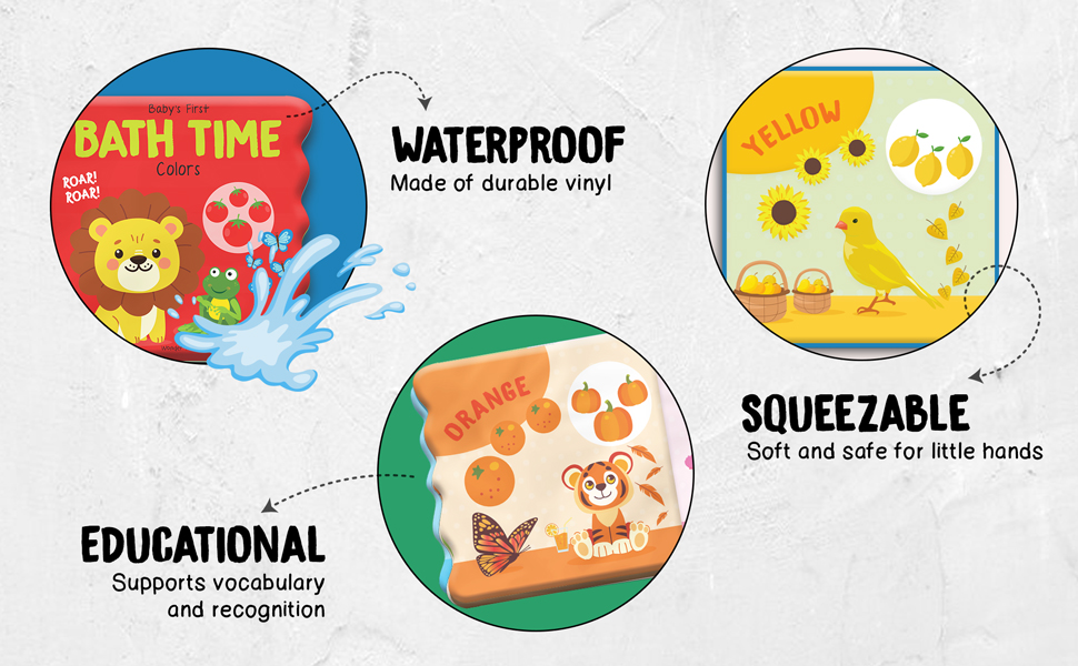 Turn bath time into a vibrant color adventure with "Baby's First Bath Time: Colors Book." Little ones will giggle with joy as they discover a rainbow of hues in this soft, waterproof book.
