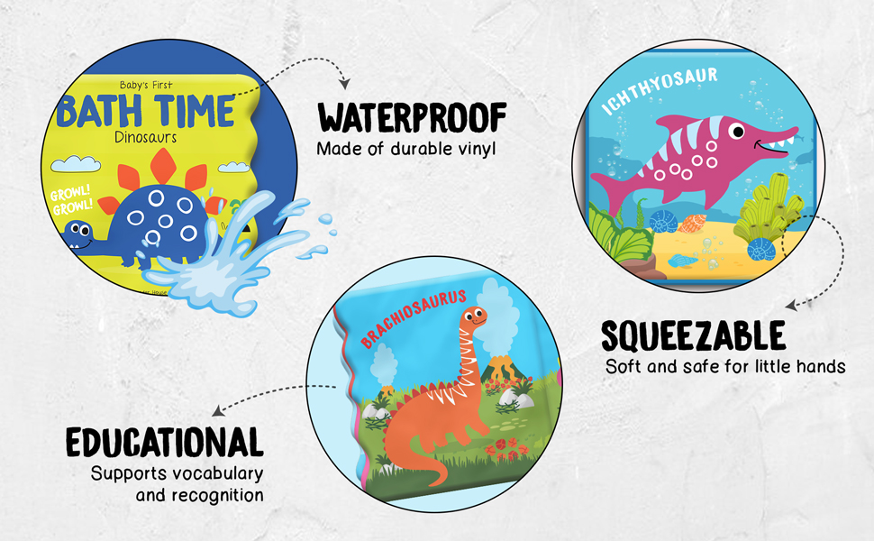 Make bath time a prehistoric adventure with "Baby's First Bath Time: Dino Friends." This waterproof, soft-touch book invites your little explorer to meet mighty dinosaurs like the T. rex, Triceratops, Stegosaurus, and more!