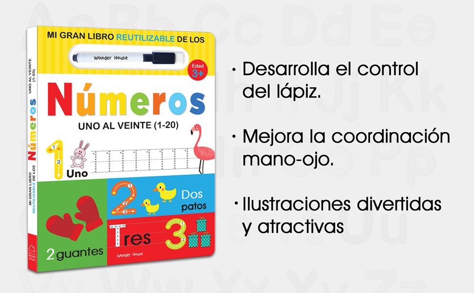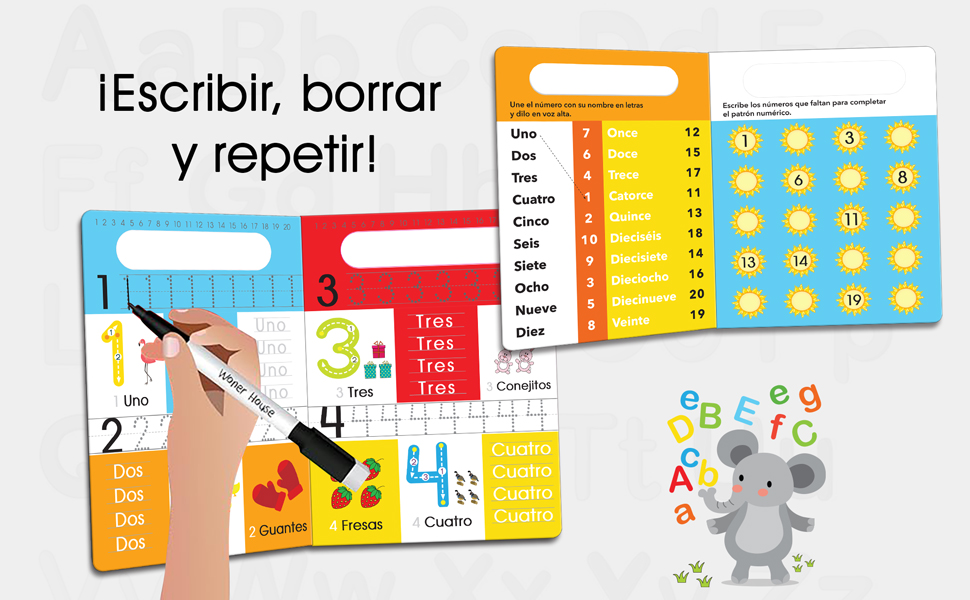 This wipe-clean book is the perfect first step to introduce young learners to numbers in English and Spanish and prepare them for school. The child will learn to identify, write and practice individual numbers from 1 to 20. Its wipe-and-clean feature allows the child to practice multiple times.