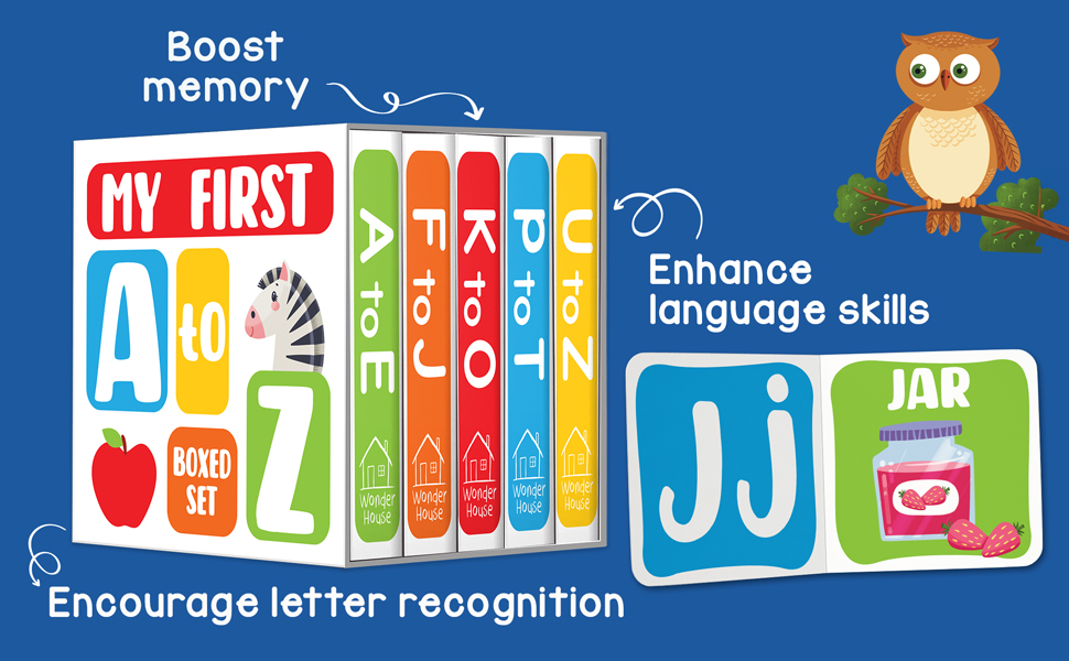 Introduce little learners to the magic of the English alphabet with this charming boxed set of five mini board books. Each book has vibrant illustrations and simple text from A to Z, making learning fun and engaging. Perfect for beginners, this set builds vocabulary by helping kids connect letters with everyday objects. An ideal gift for inquisitive young minds. What’s Inside: A to E – Meet apples, elephants, and everything in between! F to J – From fish to jar, explore fascinating objects. K to O – Discover the world of kites, owls, and more. P to T – Say hello to pandas, tigers, and terrific new words. U to Z – Unearth umbrella, zips, and other exciting surprises.