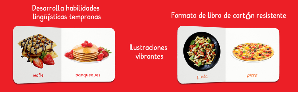 My First Board Book of Food - Spanish features a variety of food items with their names presented in both English and Spanish, making it perfect for children starting to explore languages. This beautifully illustrated board book is a delightful, bilingual introduction to the world of food items for young learners. The book offers a playful way to teach kids about healthy foods.
