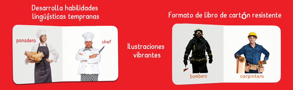 My First Board Book of People at Work - English Spanish is a vibrant, bilingual introduction to the different professions people do every day. Featuring colorful illustrations and simple text in both English and Spanish, this board book introduces young children to a wide range of occupations, from doctors and firefighters to teachers and chefs.