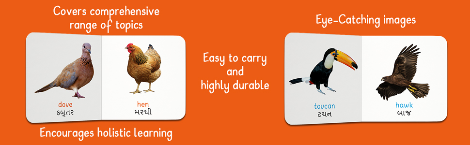 Soar into the world of birds with this bilingual board book! From pigeons to parrots, each bird is vividly illustrated and labeled in English and Gujarati. It’s a captivating way to teach children about feathered friends while enhancing their language and observation skills. Your First Step to Language Learning! Birds labeled in English and Gujarati for dual-language development Eye-catching visuals make learning engaging and fun Sparks curiosity about birds and the environment Sturdy board book perfect for little hands Enhances vocabulary, observation, and cultural connection