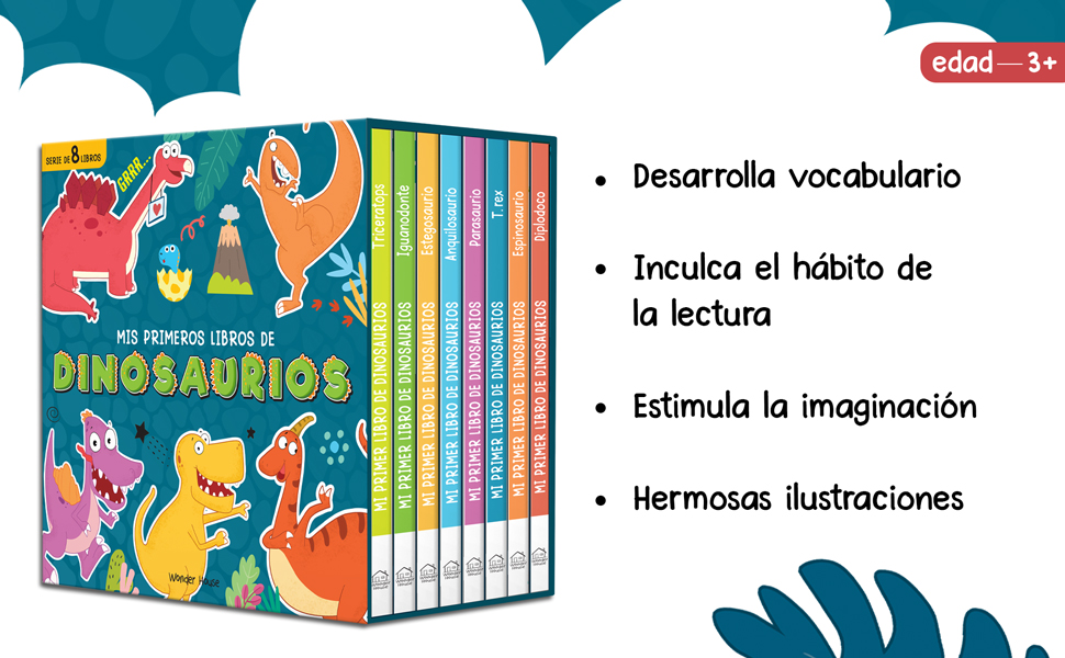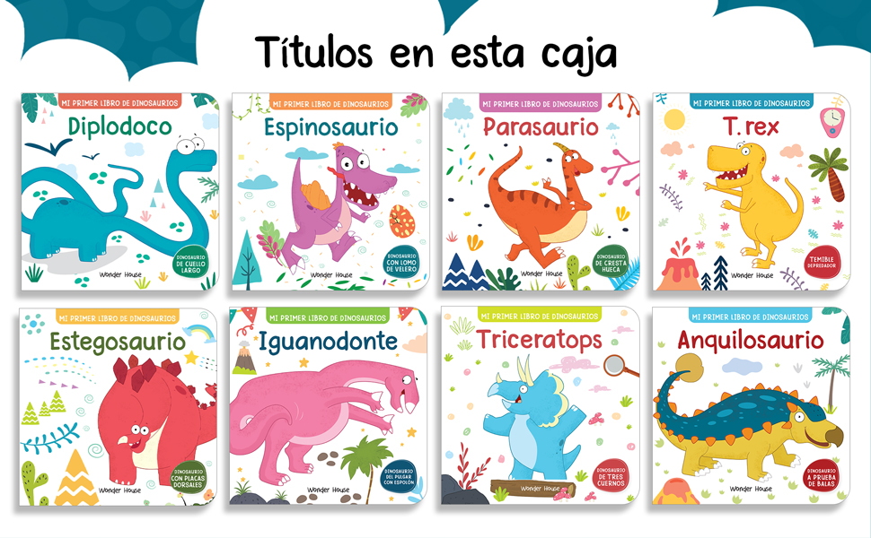My First Board Books Dinosaur introduces young readers to the world of dinosaurs. The boxed set includes 8 beautifully illustrated board books. The easy-to-read words in Spanish introduce the amazing and different dinosaurs, including the mighty T-Rex, the long-necked Diplodocus, and the armored Stegosaurus. Perfect for young dinosaur enthusiasts!