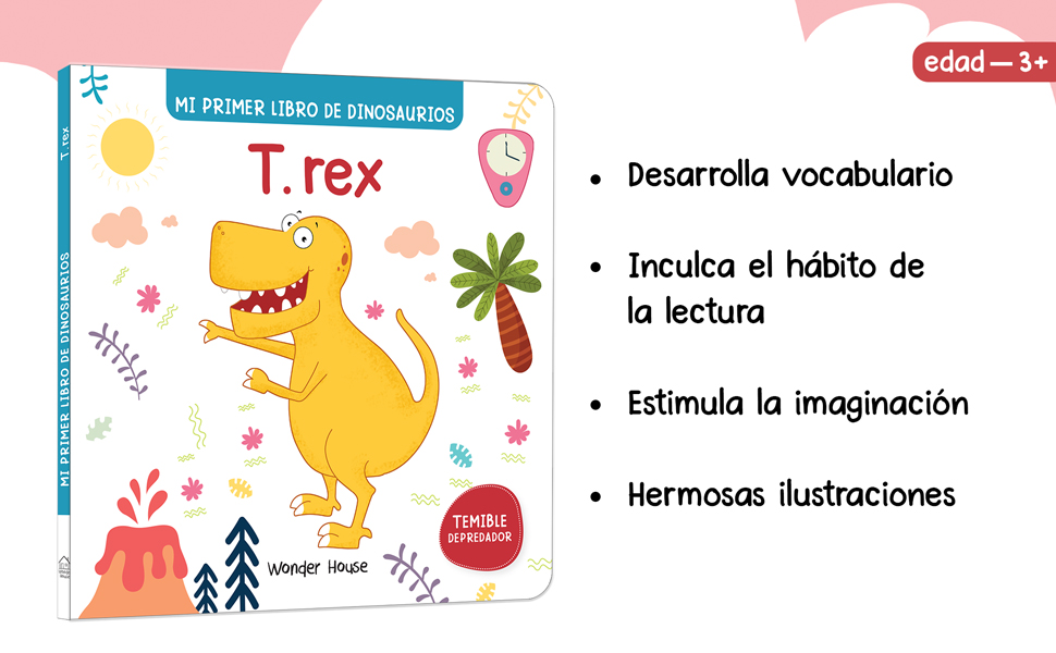 My First Dino Board Book: T. Rex is an exciting and fun way to introduce your toddler to the king of the dinosaurs! With bright, engaging illustrations and simple, toddler-friendly text in Spanish, this book brings the T. Rex to life, teaching little ones about its sharp teeth, powerful legs, and massive size.
