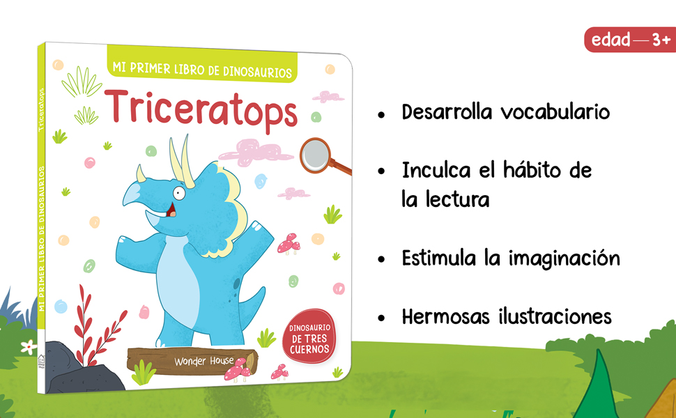 My First Dino Board Book: Triceratops – Spanish is the perfect way to introduce your toddler to the exciting world of dinosaurs! Designed with young readers in mind, this colorful board book brings the mighty Triceratops to life with fun facts. Featuring simple, engaging text and illustrations, it teaches children about this iconic dinosaur—known for its three horns and large frill—in a way that’s easy for children to understand.