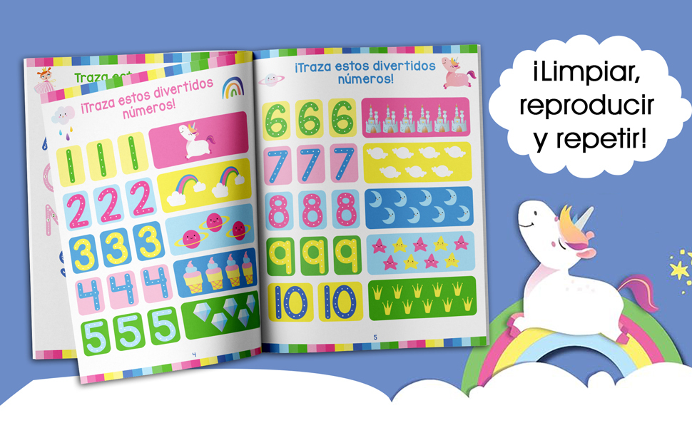 Reusable Wipe and Clean Let's Be a Unicorn Activity Book – Spanish offers endless fun for young unicorn enthusiasts! This interactive activity book features wipeable pages, allowing children to complete a variety of engaging activities in Spanish, such as drawing, tracing, and writing, and then wipe them clean to start again.