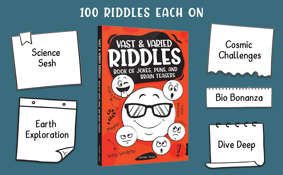 Dive into a world of surprises with this Vast and Varied Collection! Can you crack the mind-boggling puzzles? Or guess the answer to the quirkiest jokes? Each page is packed with riddles that’ll make you laugh and think. Are you ready to uncover the fun? Let the challenge begin!