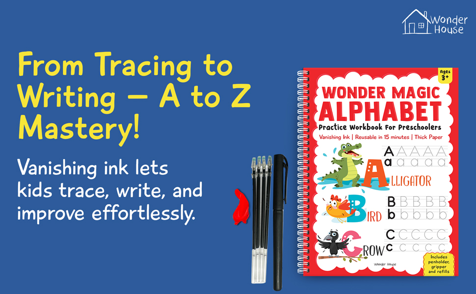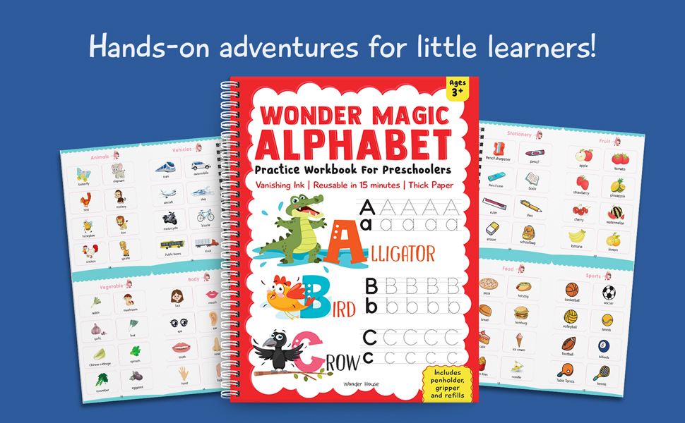 Wonder Magic Alphabet Practice Workbook for Preschoolers is designed to introduce young learners to the world of letters. With its unique vanishing ink, this workbook allows children to practice writing and tracing letters repeatedly. This workbook lays the foundation for early literacy, while making learning fun and interactive. It includes entertaining activities and colorful images.